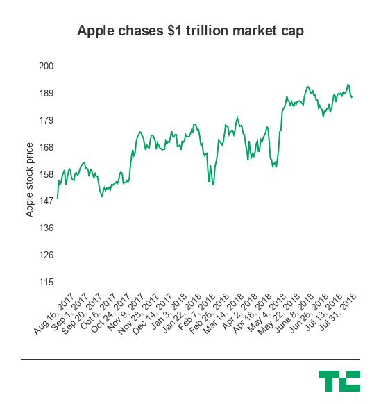 Update: Apple shares have now crossed the magic number that values the company at $1 trillion.