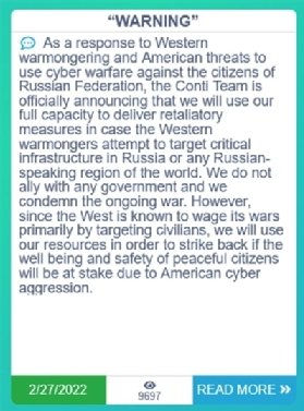 Conti ransomware gang backs Russia, threatens US